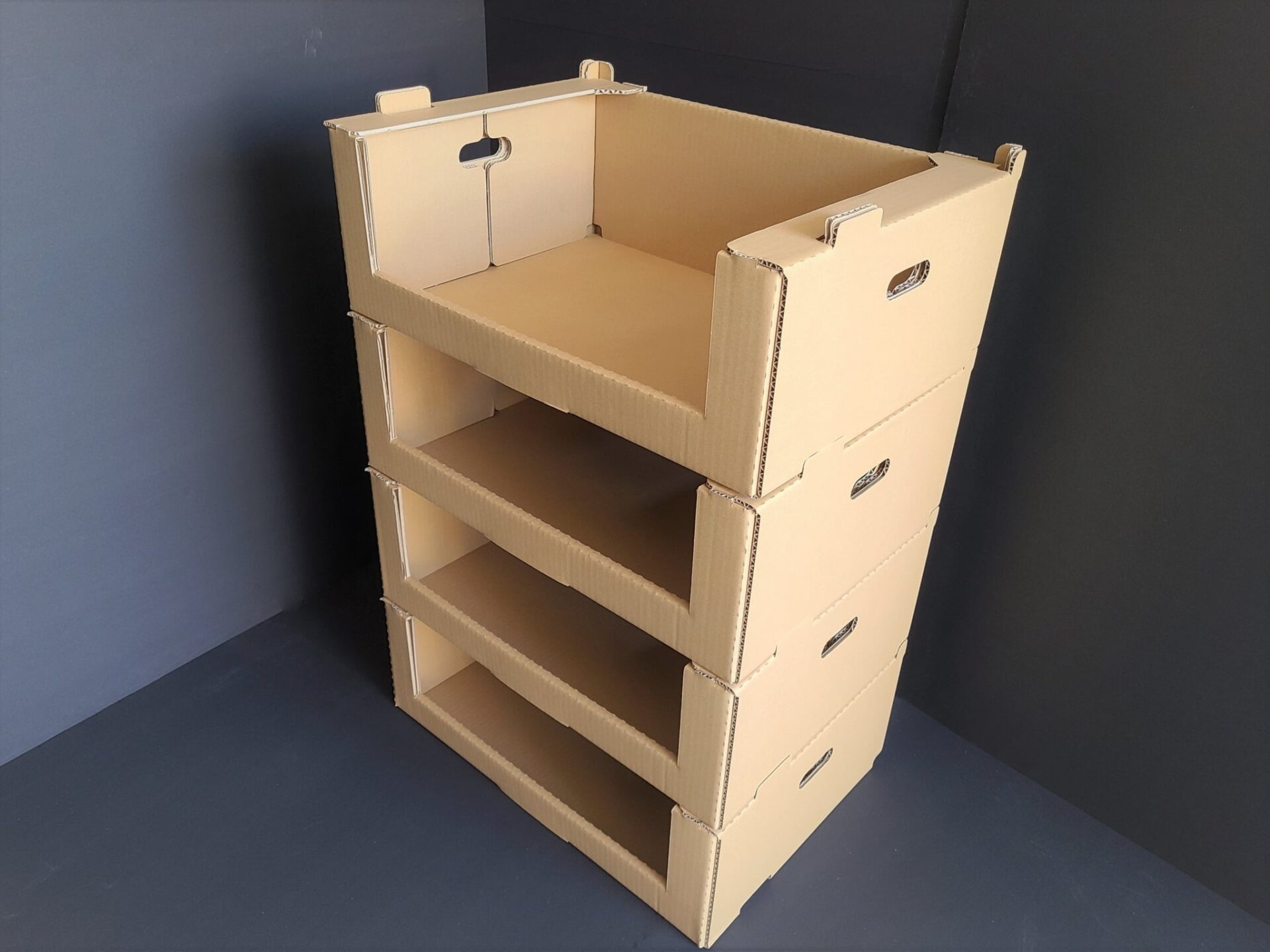 home TOP chevron_right 開発事例紹介 chevron_right 段ボール製 収納棚【紙製什器】