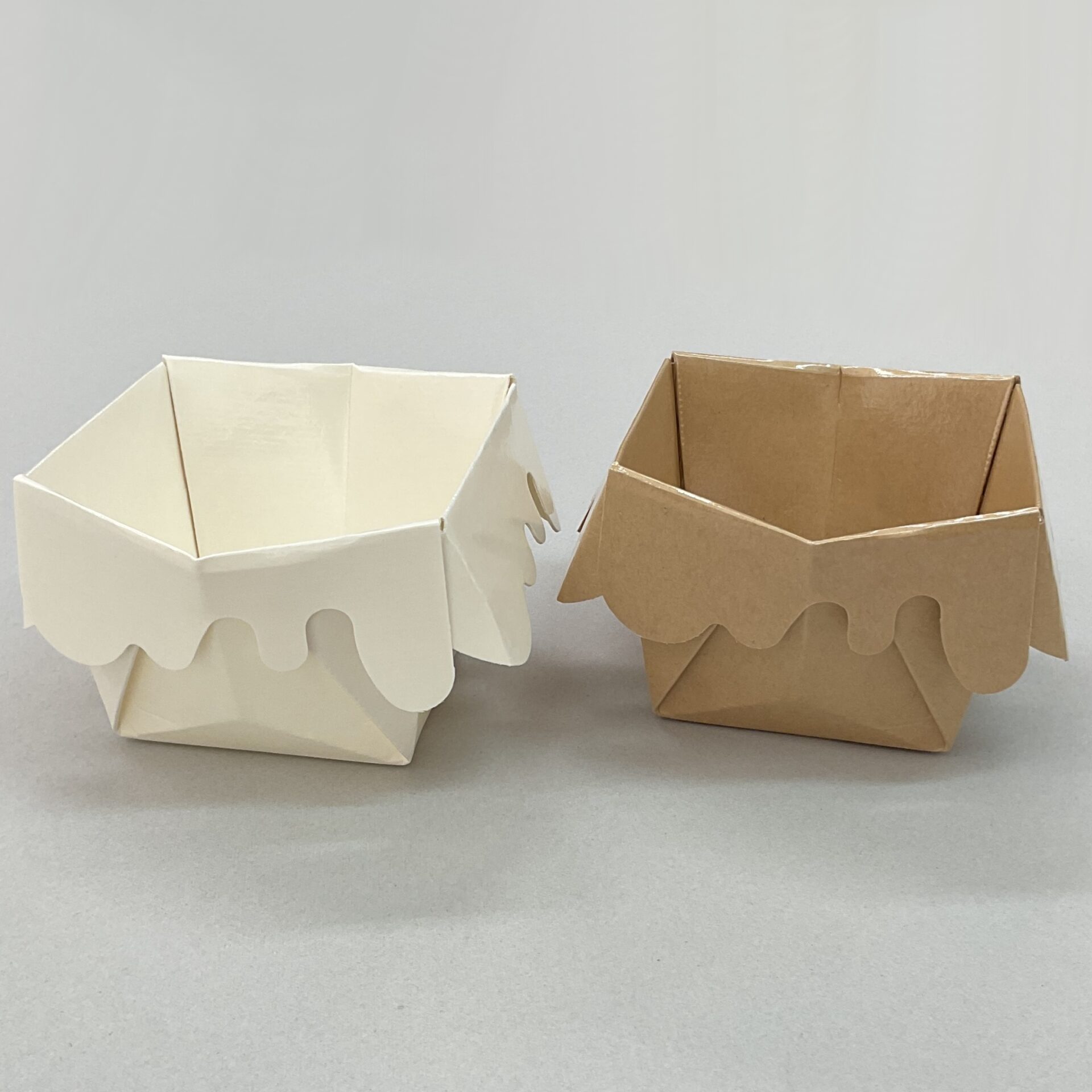 開いた状態で納品し、おりがみのように折って使います。