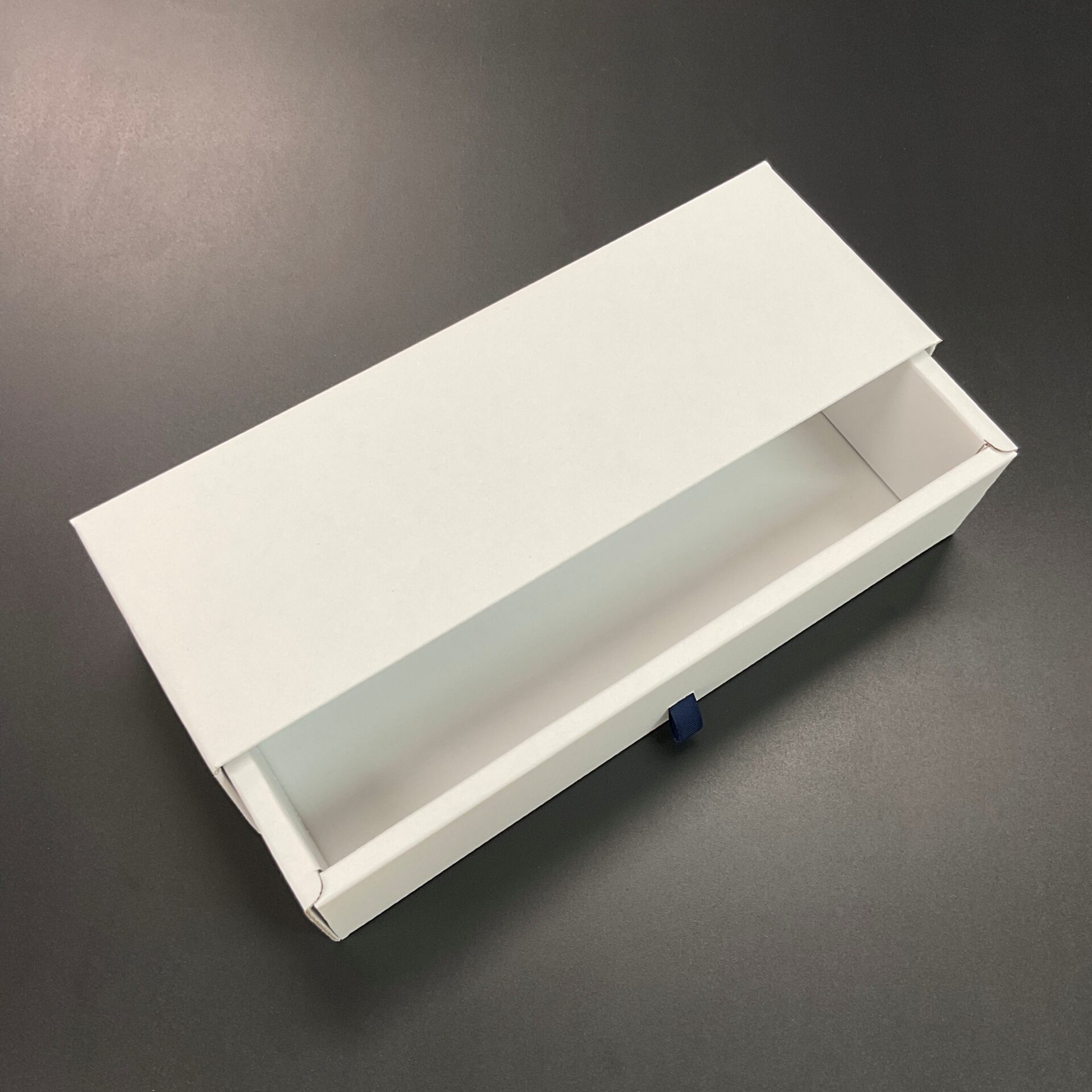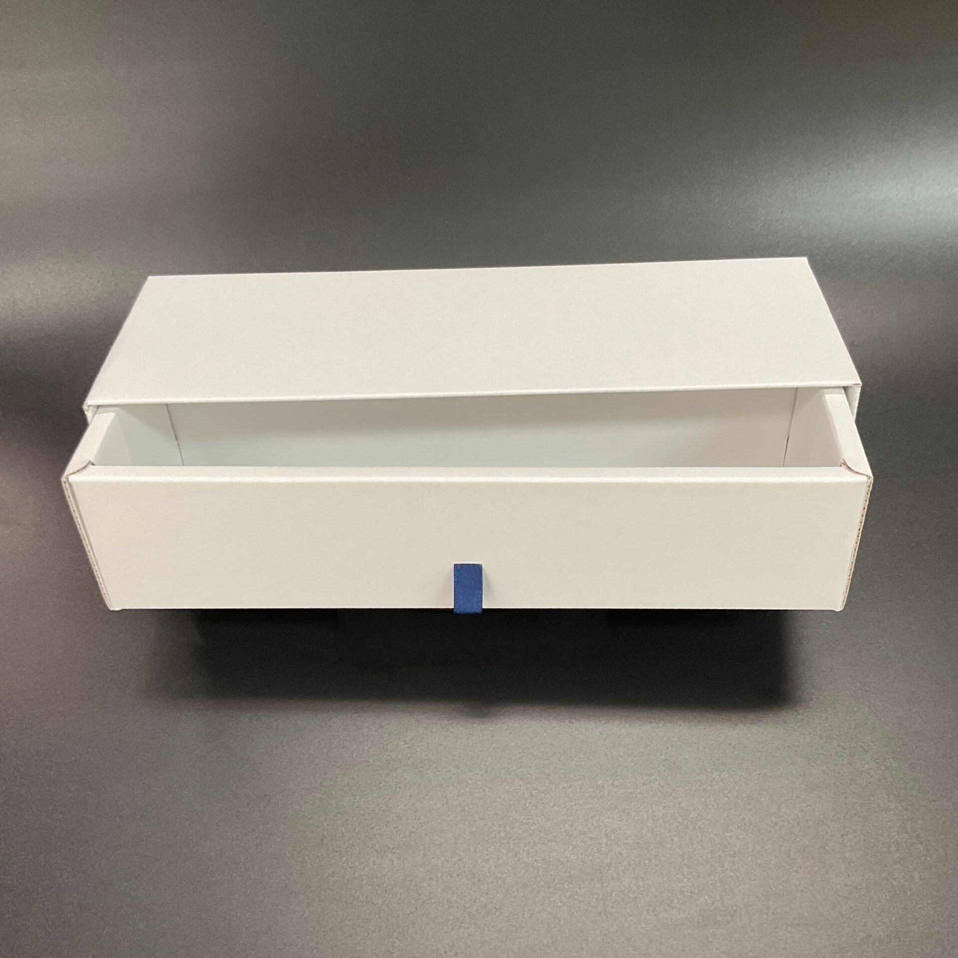 一般的に引き出し式の箱は貼り箱が多いのですが小ロットですと中々費用感に合わない際に少しコストを抑えることができる箱になっています。