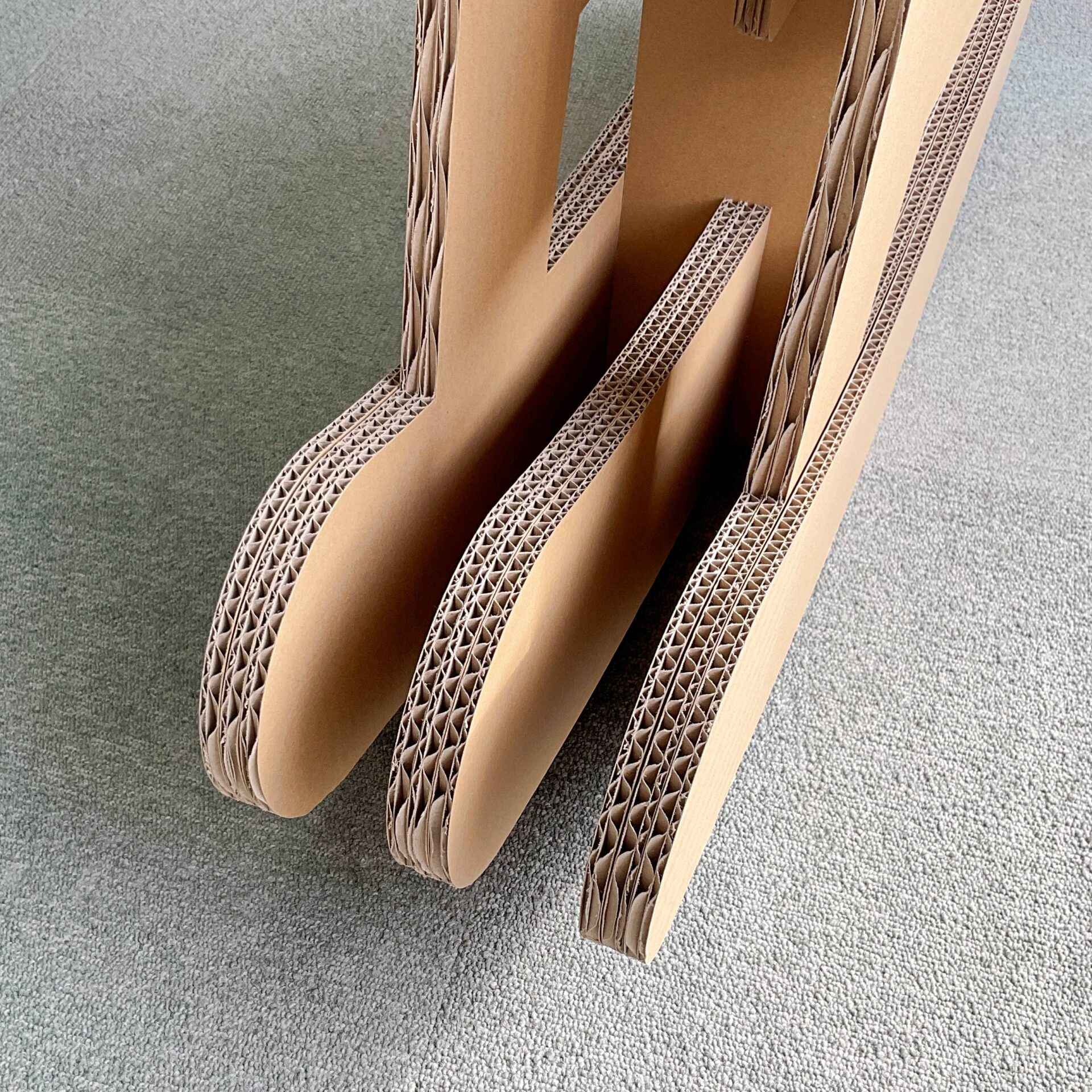 Wフルートという厚手の段ボールを重ねて作っています。