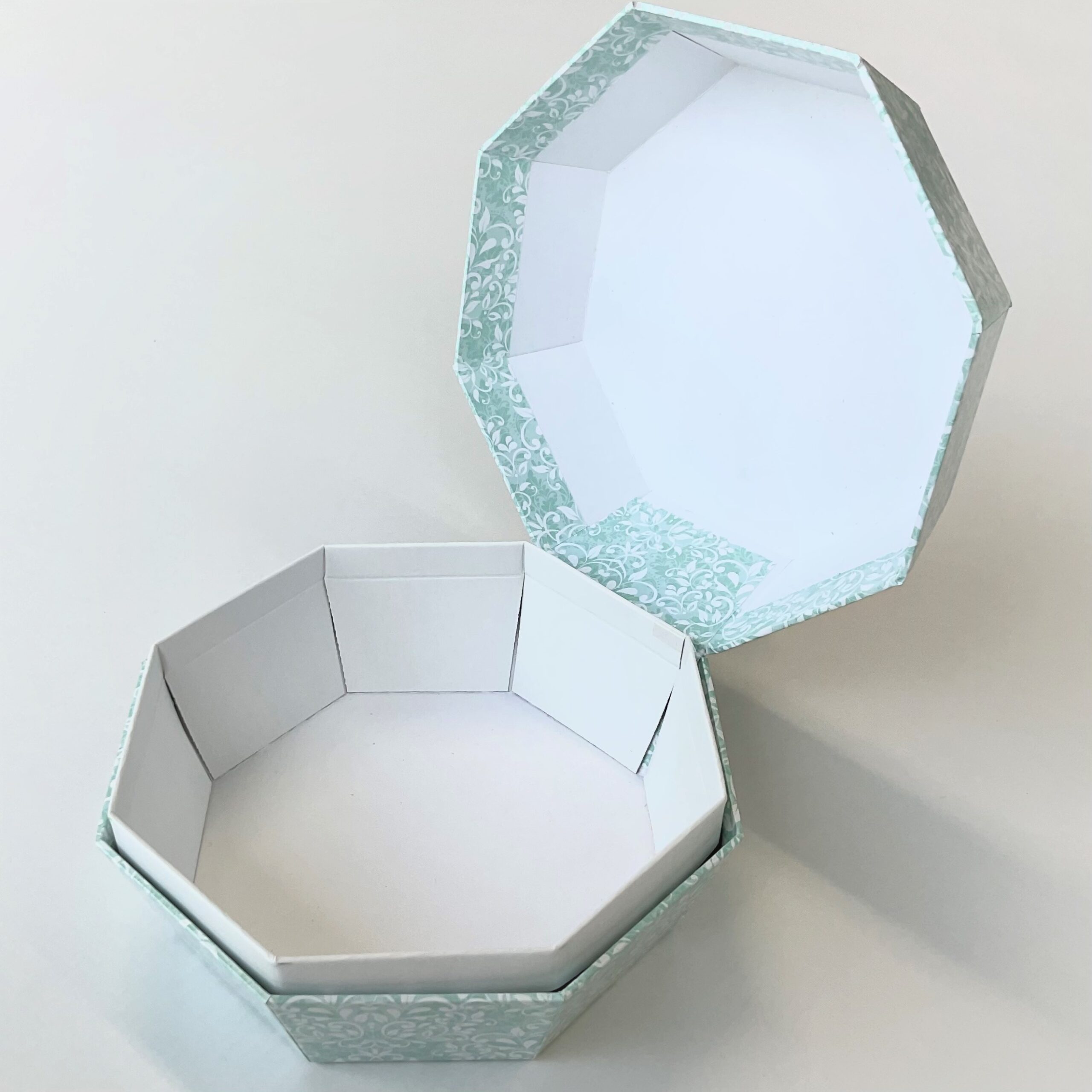 貝のように開け閉めできる、多角形の貼り箱です!