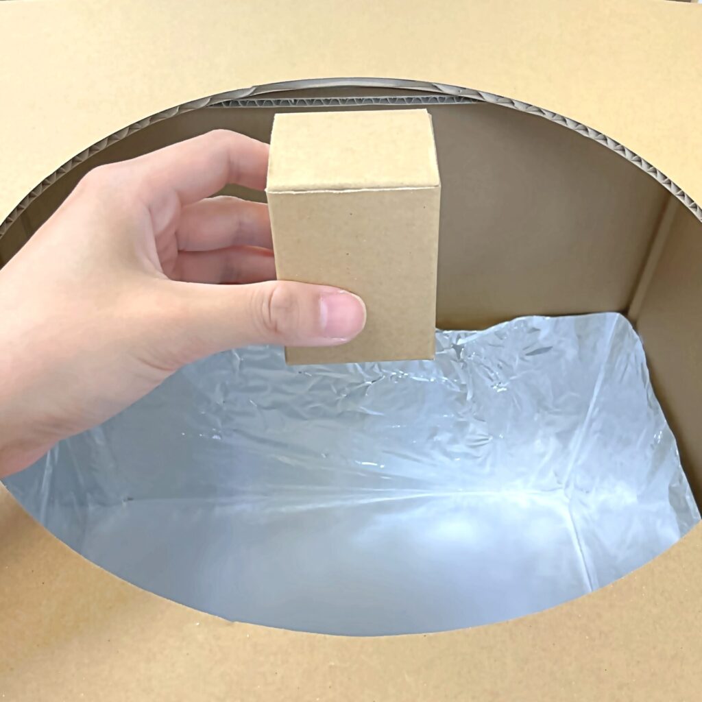 続いて、ぴったりサイズの段ボール箱にいれて落としてみます。