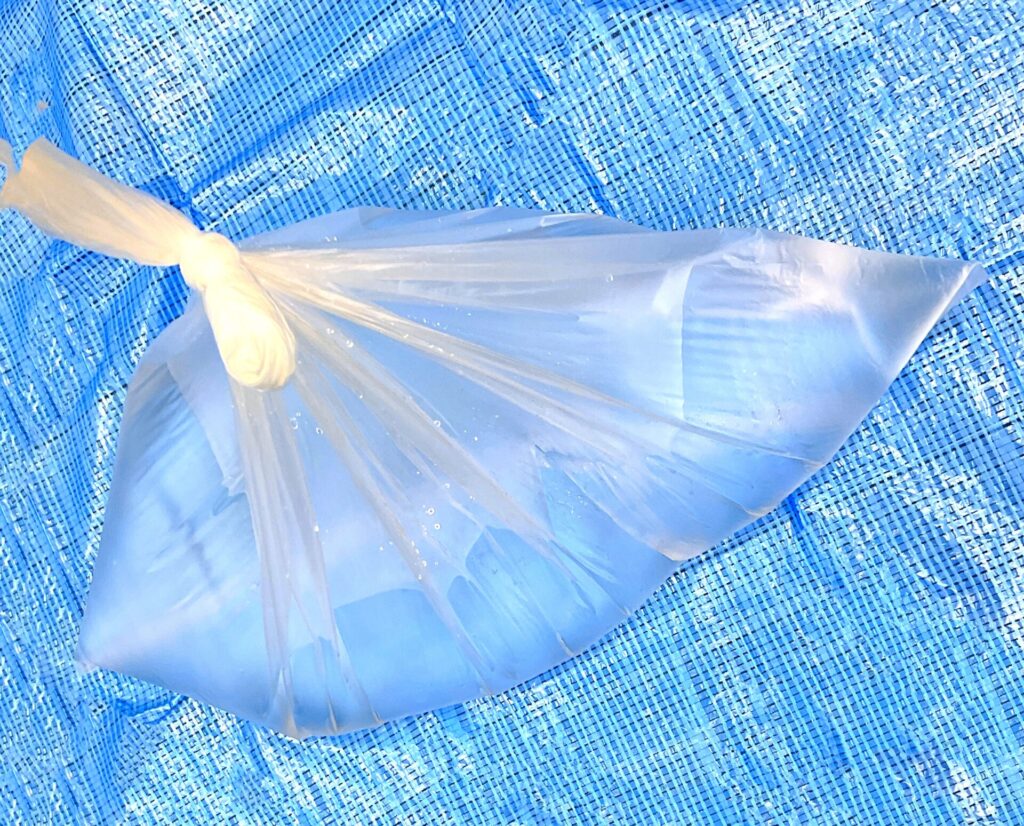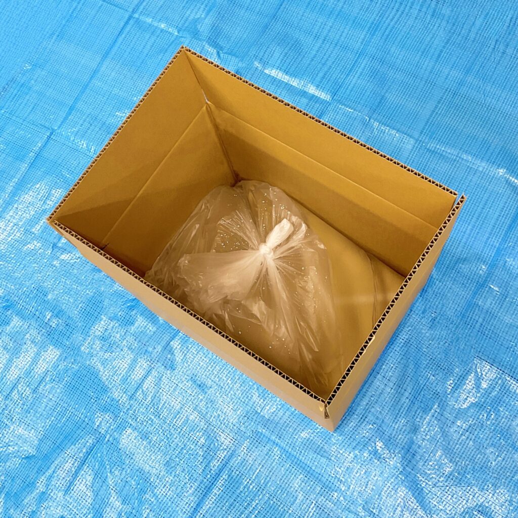 水嚢とは下の画像のように袋に水を入れ土嚢の代わりにします。ただこのままではすぐ袋が破れてしまうので段ボールに入れ蓋をし強度を上げています。