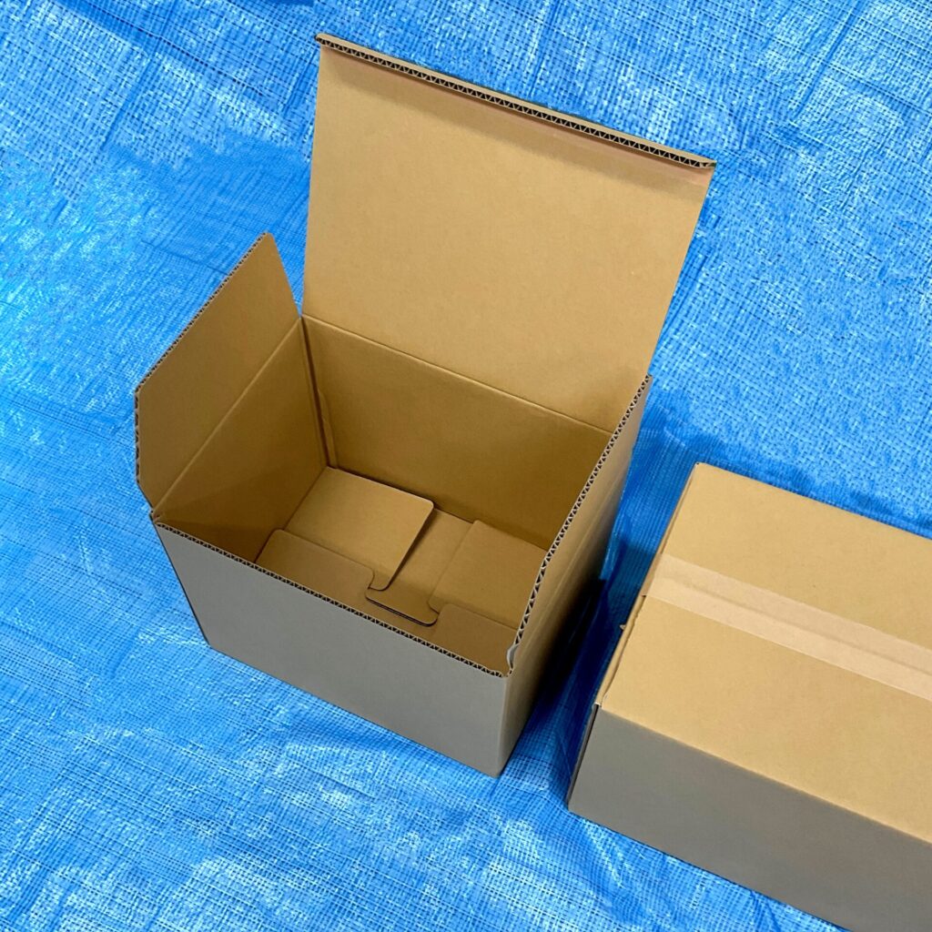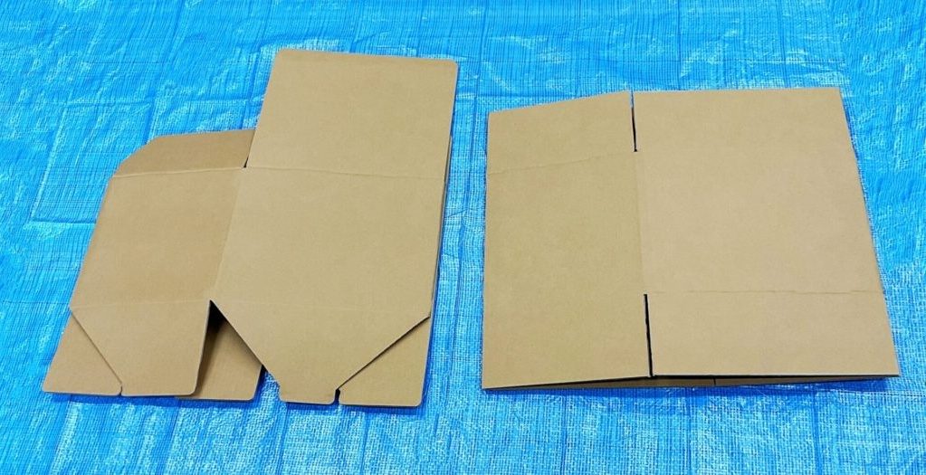 下記画像左の箱はアメロク式といい右のようにガムテープで止めなくても梱包ができます。そのため咄嗟の対策にも便利です。