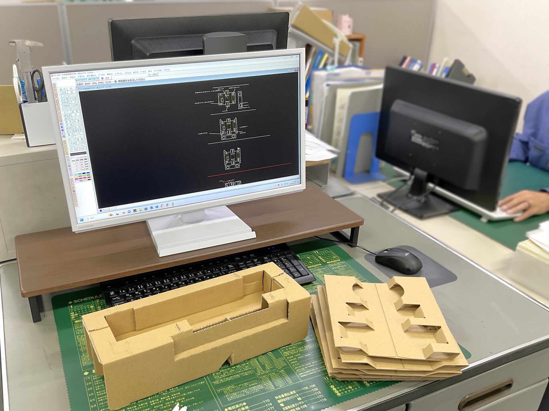 製品のサイズや形状、配送方法に合わせて、最適な梱包箱や緩衝材をゼロから設計。